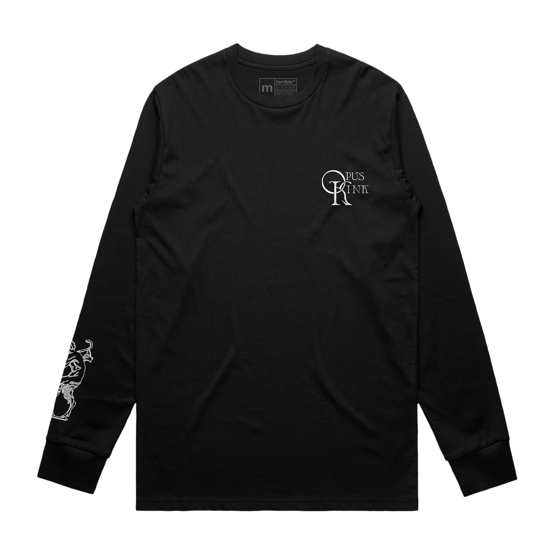Black long sleeve t-shirt. AS Colour Block Tee, front, back and sleeve design.
